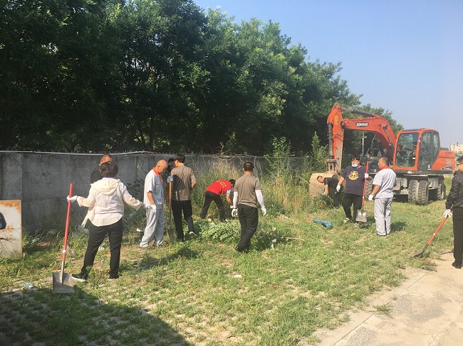 因?yàn)榻煌ㄙe館院內(nèi)是一個(gè)廢棄的停車場,所以需要清理的垃圾較多。活動(dòng)現(xiàn)場,參加義務(wù)勞動(dòng)的志愿者們拿著掃帚、耙子、鐵锨等工具在院內(nèi)開始清理工作,雖然天氣炎熱,但每一位志愿者都不怕臟、不怕累,擼起袖子加油干,認(rèn)真對停車場院內(nèi)生活垃圾、衛(wèi)生死角、雜草及白色污染等進(jìn)行了整治清理,并聯(lián)系了清運(yùn)汽車,對院內(nèi)的亂堆的雜物、建筑垃圾進(jìn)行了清運(yùn)。